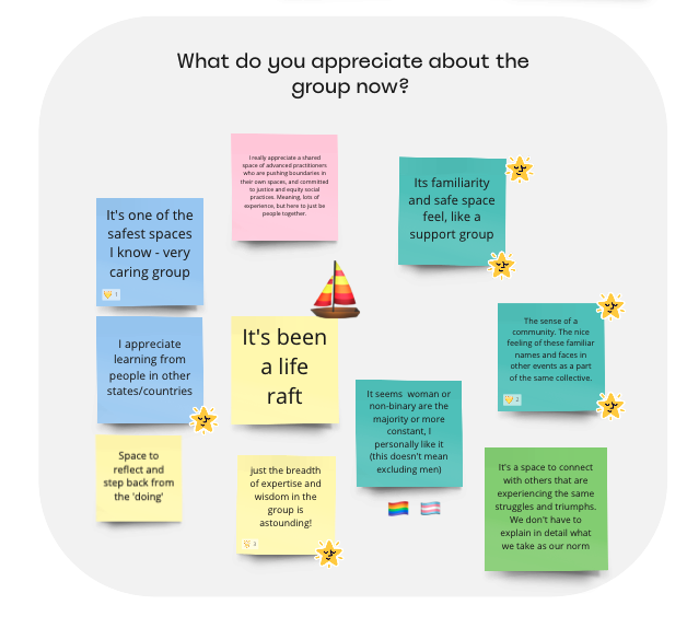 Members’ notes of appreciation in a frame from the Miro board created by guest facilitator Nicole Barling-Luke for the final Co-Design Club session (November 2021).